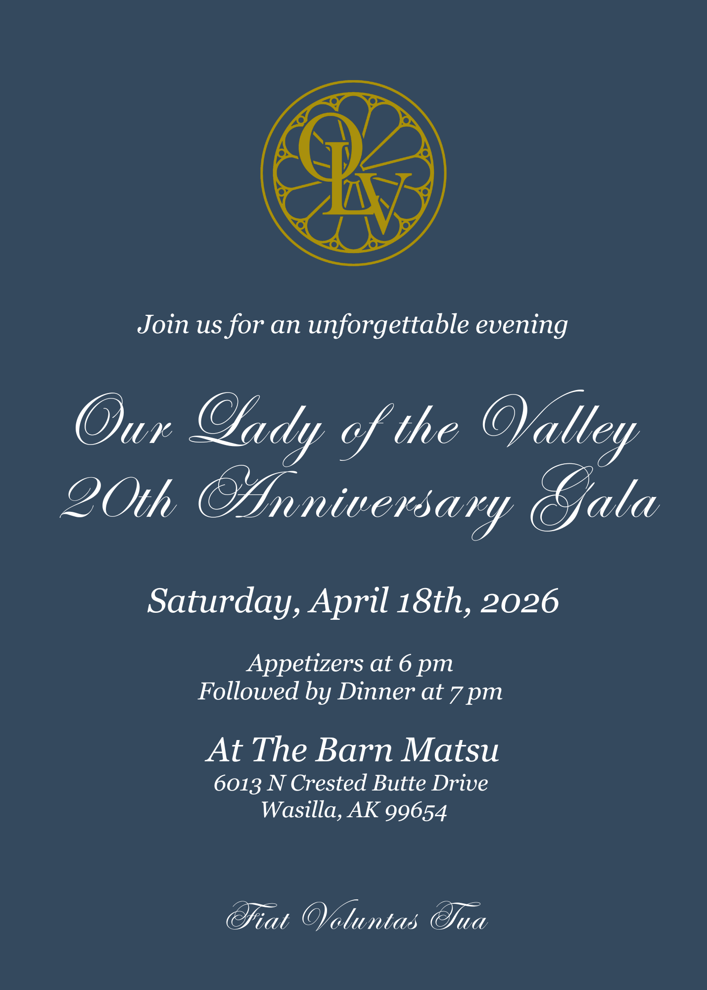 OLV 20th Anniversary Gala April 18, 2026 6:00 PM (AKDT)